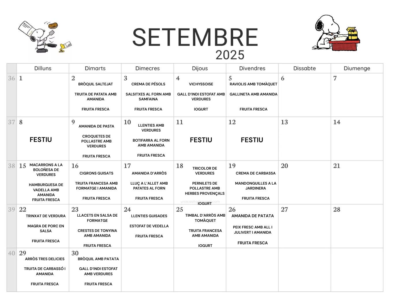 Menú d'aquest mes.